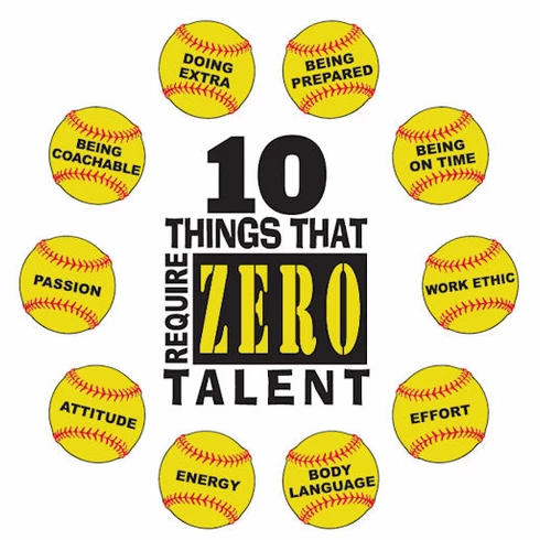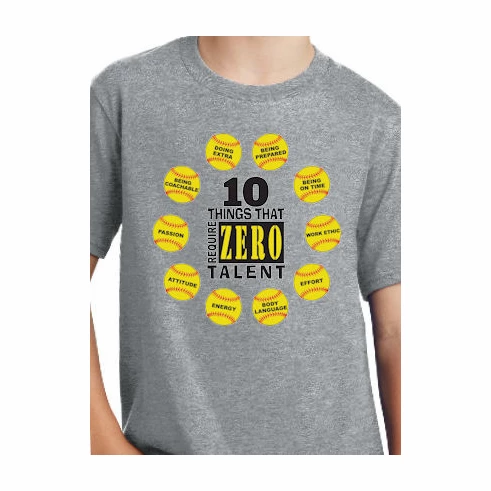 These softball t-shirts have the 10 Things That Require Zero Talent softball graphics screened on the chest. 100% cotton.