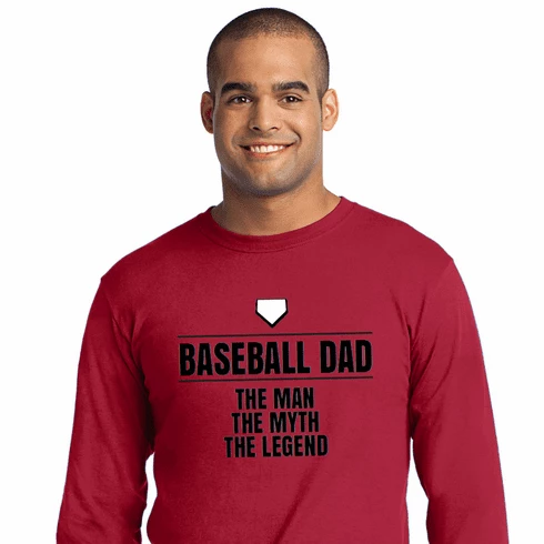 These baseball t-shirts feature the Baseball Dad – The Man The Myth The Legend graphics digitally printed on the chest. 100% cotton.