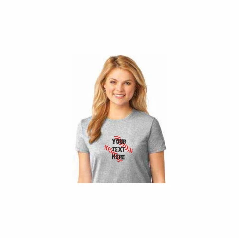 These custom baseball women’s t-shirts allow you to choose the Baseball Nickname, Team Name, or any baseball text you want screened on the chest.