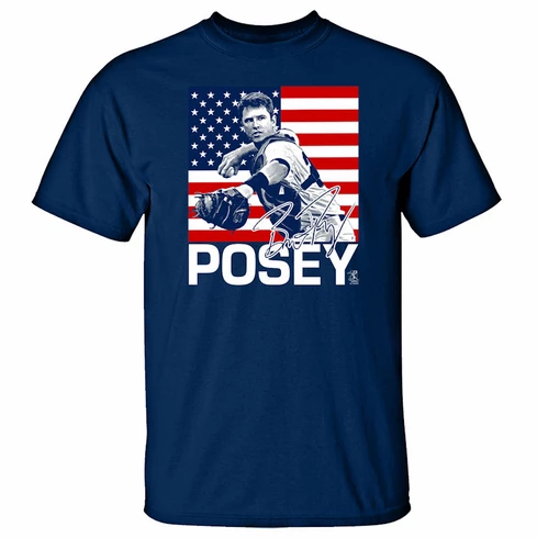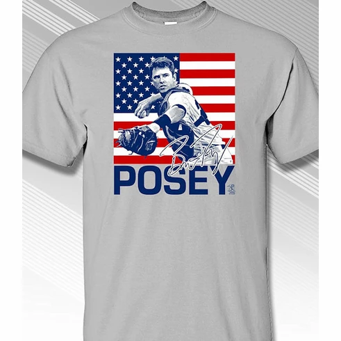 These baseball t-shirts have the Buster Posey United States Flag graphics printed on the chest. 100% cotton.