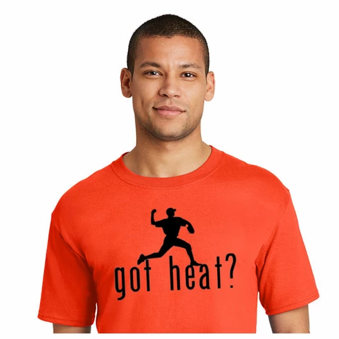 These baseball t-shirts have the got heat? logo printed on the chest.