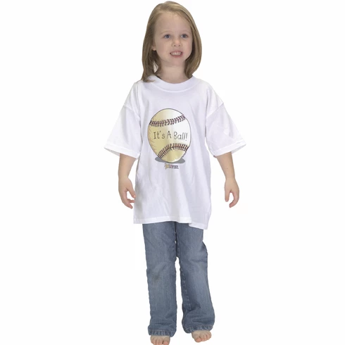These white youth t-shirts have the It’s A Ball! Baseball screened on the front.