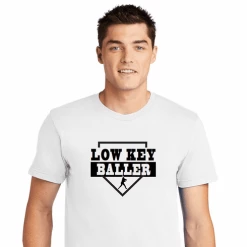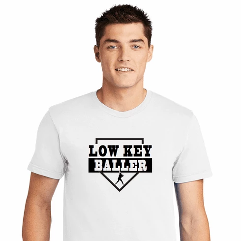 These baseball t-shirts feature the Low Key Baller baseball graphics digitally printed on the chest. 100% cotton.