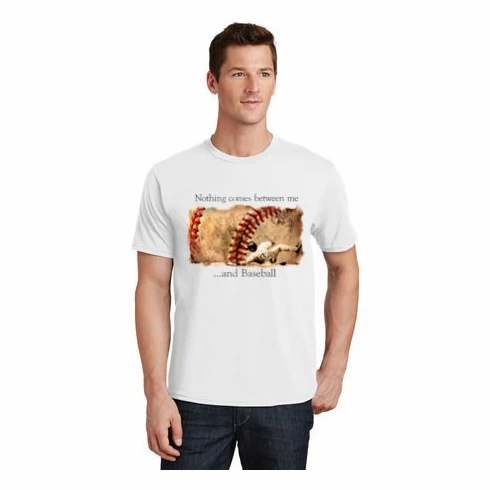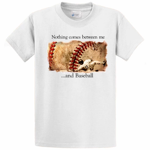 These baseball t-shirts have the Nothing comes between me…and Baseball graphics screened on the chest. 100% cotton.