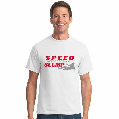 These baseball t-shirts feature the Speed Never Goes in a Slump baseball graphics printed on the chest. 100% cotton.